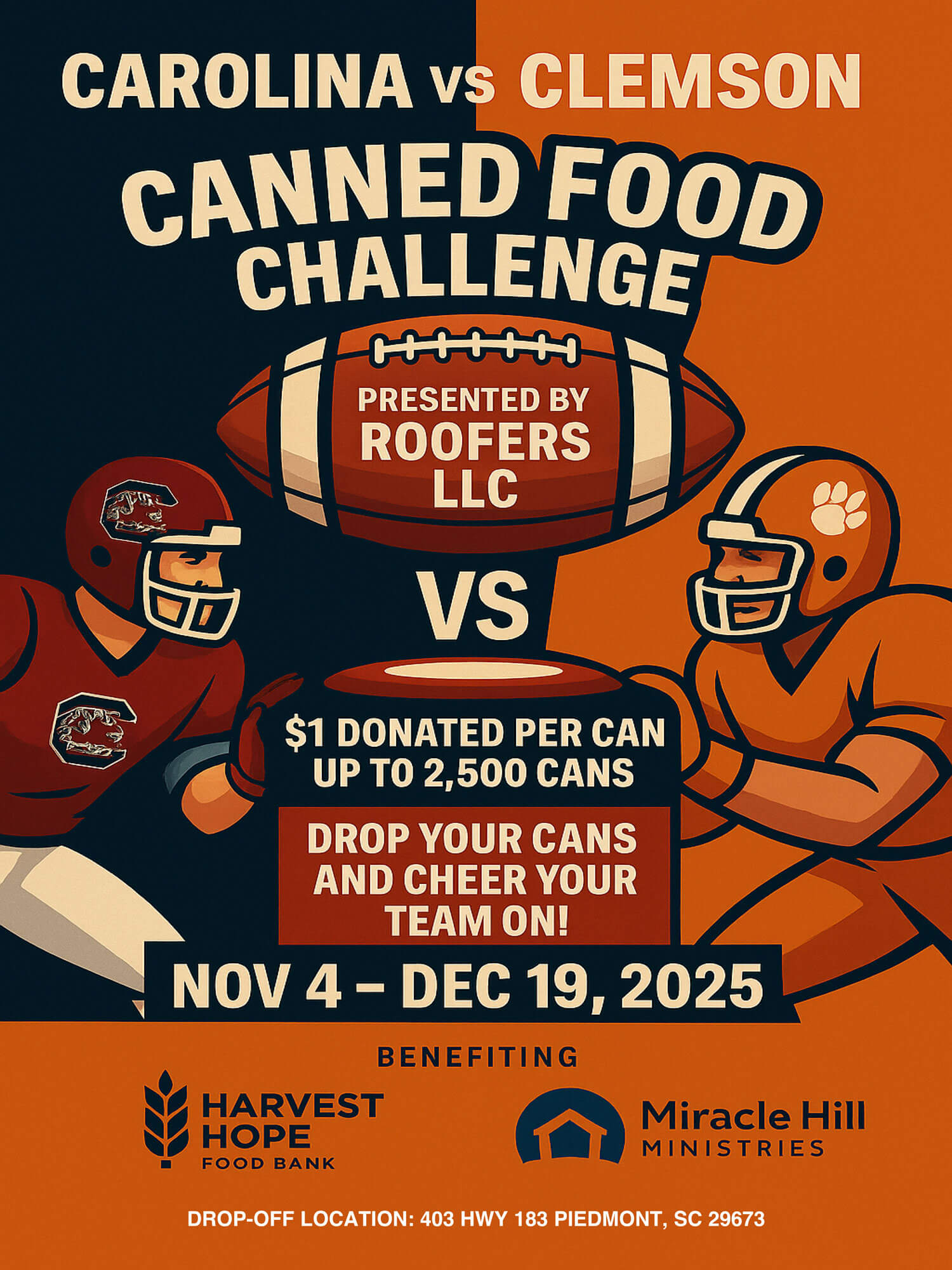 Carolina vs Clemson Canned Food Challenge Carolina vs Clemson Canned Food Challenge Events Carolina vs Clemson Canned Food Challenge November 4 to December 19, 2025 Canned food challenge presented [...] By Dan Cad|November 3, 2025|Events|0 Comments Read More